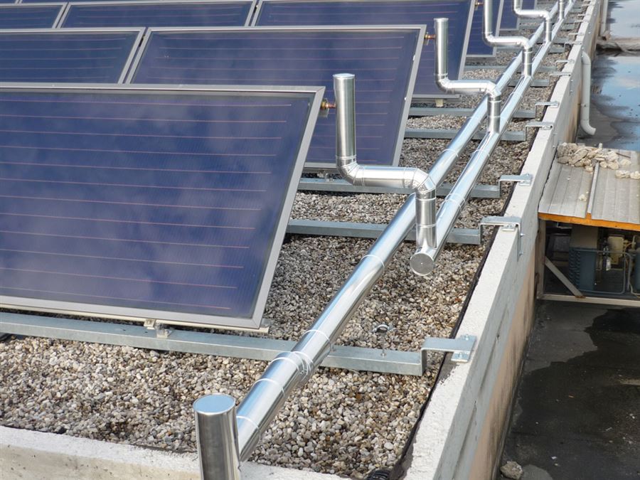 L’impianto solare termico permette di sfruttare la radiazione solare per la produzione di acqua calda impiegabile direttamente nel ciclo produttivo, per il riscaldamento degli ambienti o per usi sanitari.L’impianto solare termico si affianca agli impianti tradizionali di riscaldamento degli edifici ed è pensato come tecnologia integrativa per la produzione di calore. La sua installazione non comporta la sostituzione della distribuzione impiantistica eventualmente già presente. A seconda delle condizioni climatiche dell’ambiente in cui viene installato, il contributo dell’impianto può raggiungere il 65% del fabbisogno annuale.